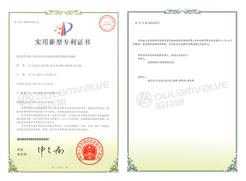 帶有萬向節(jié)連軸驅(qū)動裝置的波紋管截止閥