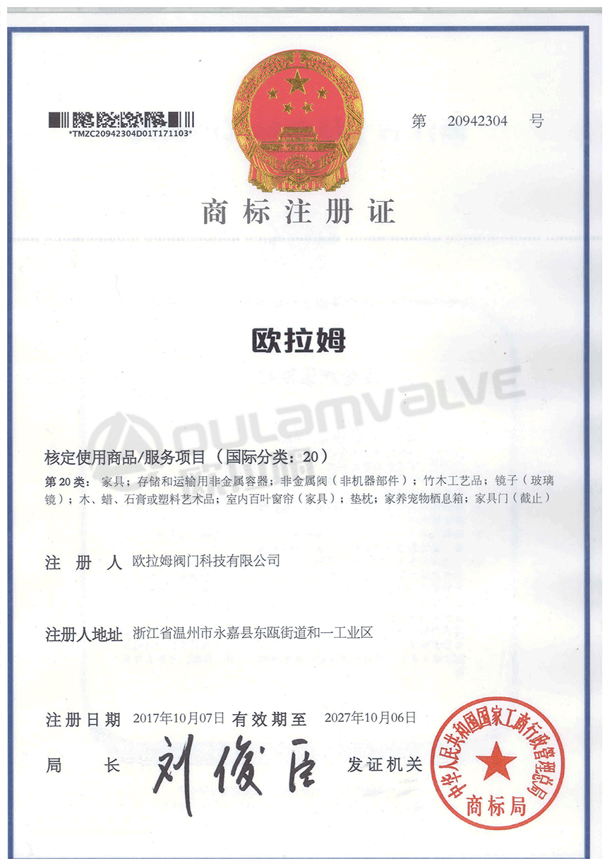 “歐拉姆”商標(biāo)注冊(cè)證
