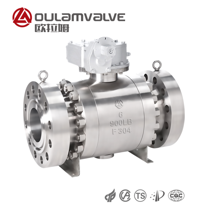 固定球閥是新一代高性能球閥,適用于長(zhǎng)輸管道和一般工業(yè)管道。其強(qiáng)度、安全性和抗惡劣環(huán)境的能力在設(shè)計(jì)中得到了特別考慮,適用于各種腐蝕性和非腐蝕性介質(zhì)。與浮動(dòng)球閥相比,工作時(shí),閥前流體壓力對(duì)球體產(chǎn)生的作用力全部傳遞給軸承,球體不會(huì)向閥座移動(dòng),因此閥座不會(huì)承受過(guò)大的壓力。因此,本發(fā)明扭矩小,閥座變形小,密封性能穩(wěn)定,使用壽命長(zhǎng),適用于高壓大口徑場(chǎng)合。